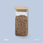 بانکه شیشه ای درب چوبی مربع 20 سانت