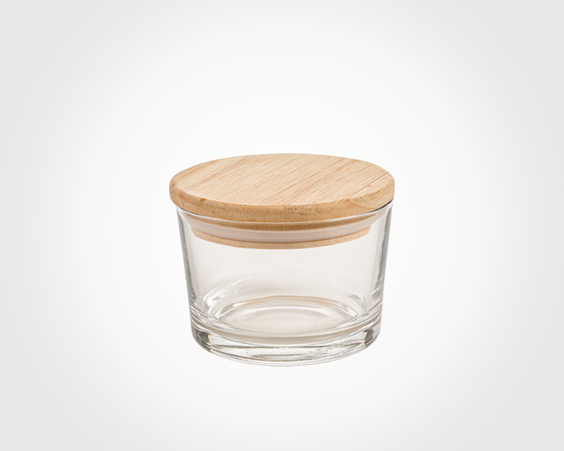 ظرف شیشه ای 190 میلی لیتر در چوبی